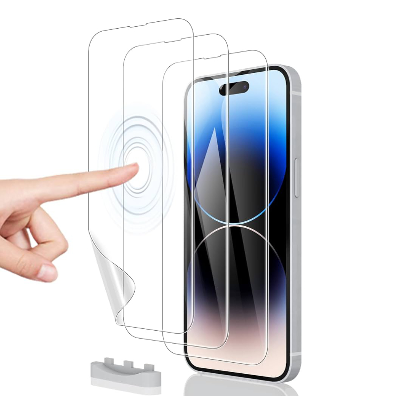 A diferencia de los protectores de pantalla de vidrio templado, el hidrogel es más flexible, lo que le permite absorber pequeños impactos y cubrir completamente pantallas curvas o de borde a borde, adaptándose perfectamente a la pantalla del dispositivo.