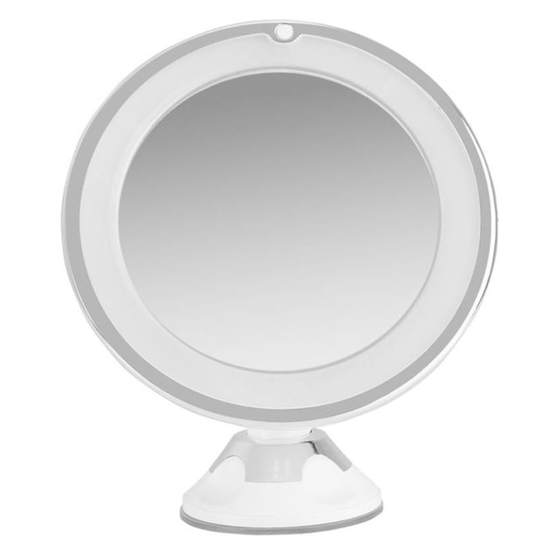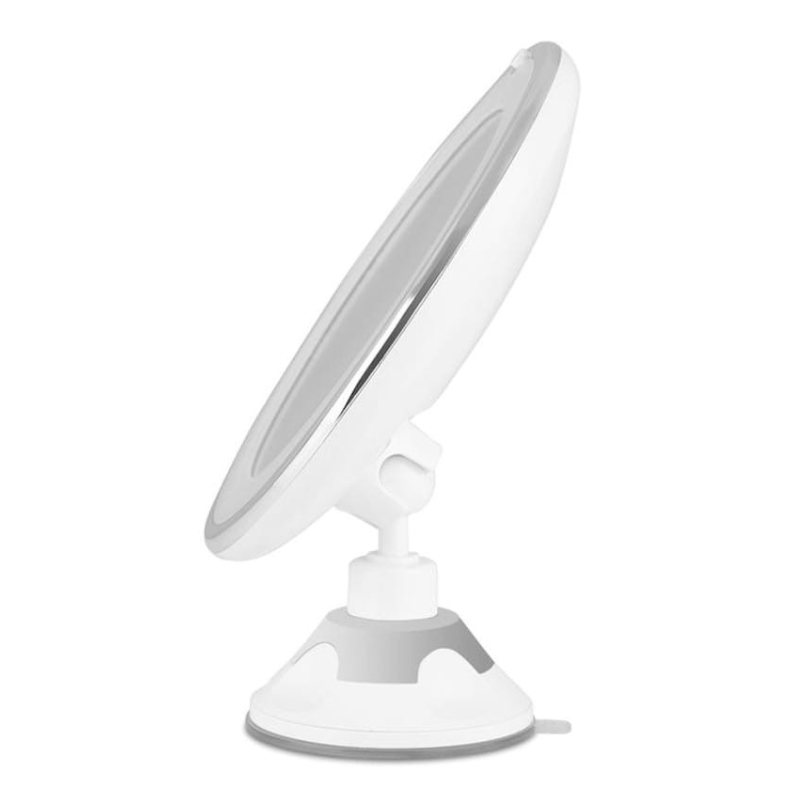 Cuenta con iluminación LED circular integrada, una ventosa ajustable con una sujeción firme y se puede retirar y guardar fácilmente cuando no se usa. Funciona con 3 pilas AAA (no incluidas).