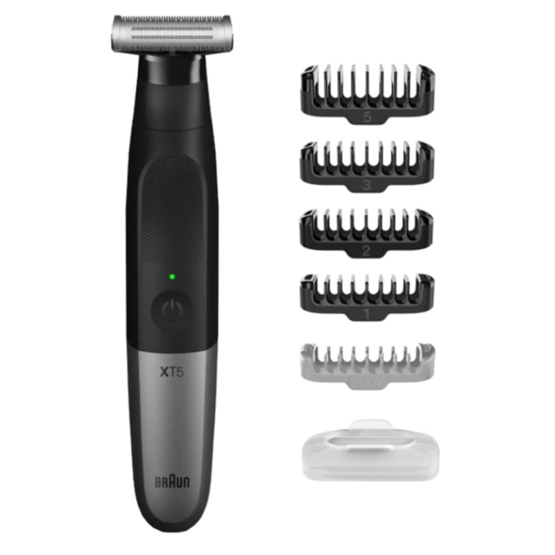 La Braun Series X XT5100 Wet & Dry es una afeitadora y recortadora versátil diseñada para el cuidado facial y corporal.