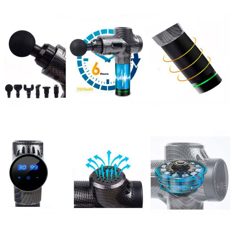Alivia El Dolor Y La Rigidez Después Del Entrenamiento Con Esta Pistola De Masaje Muscular Profesional, Equipada Con 6 Cabezales De Silicona Para Diferentes Grupos Musculares Y 30 Velocidades Ajustables.