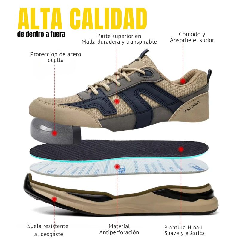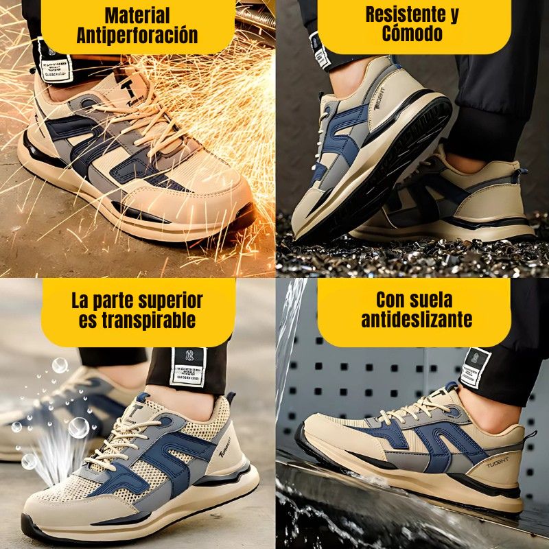 Diseñadas para satisfacer las exigencias de la vida cotidiana, estas zapatillas están equipadas con una robusta protección de acero en la parte delantera, lo que garantiza que tus pies estén siempre protegidos contra impactos y peligros no deseados.