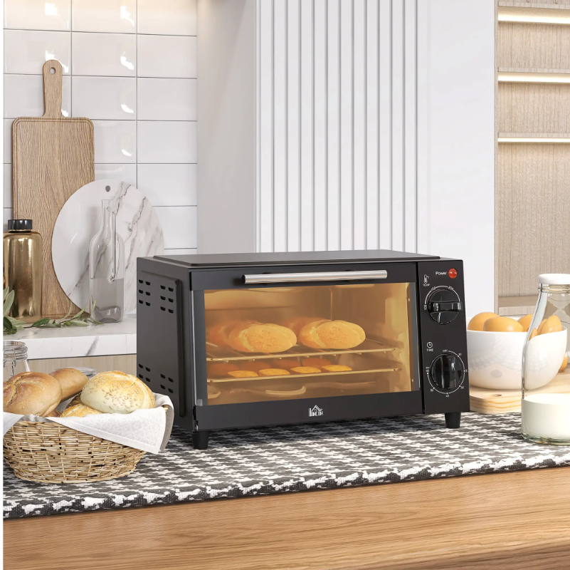 El mini horno eléctrico HOMCOM de 9 litros es la solución compacta y práctica para cocinar, asar, tostar o calentar alimentos en espacios reducidos como apartamentos, oficinas, residencias estudiantiles y caravanas.