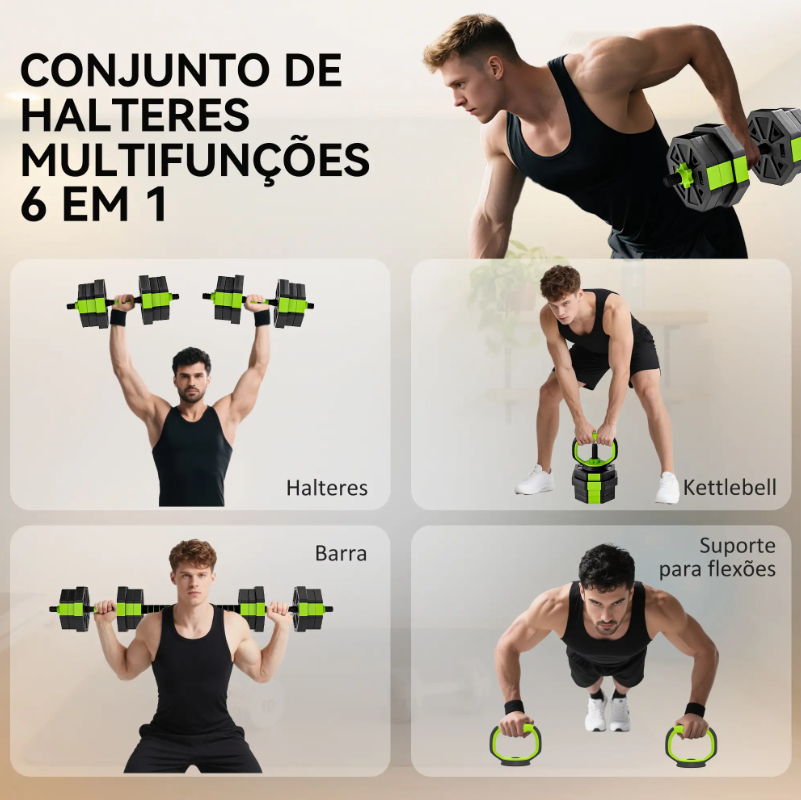 Set Multifuncional 4 En 1: Se Puede Usar Como Mancuernas, Barra De Pesas, Pesa Rusa O Soporte Para Flexiones, Lo Que Le Permite Variar Su Entrenamiento Y Trabajar Todo El Cuerpo.