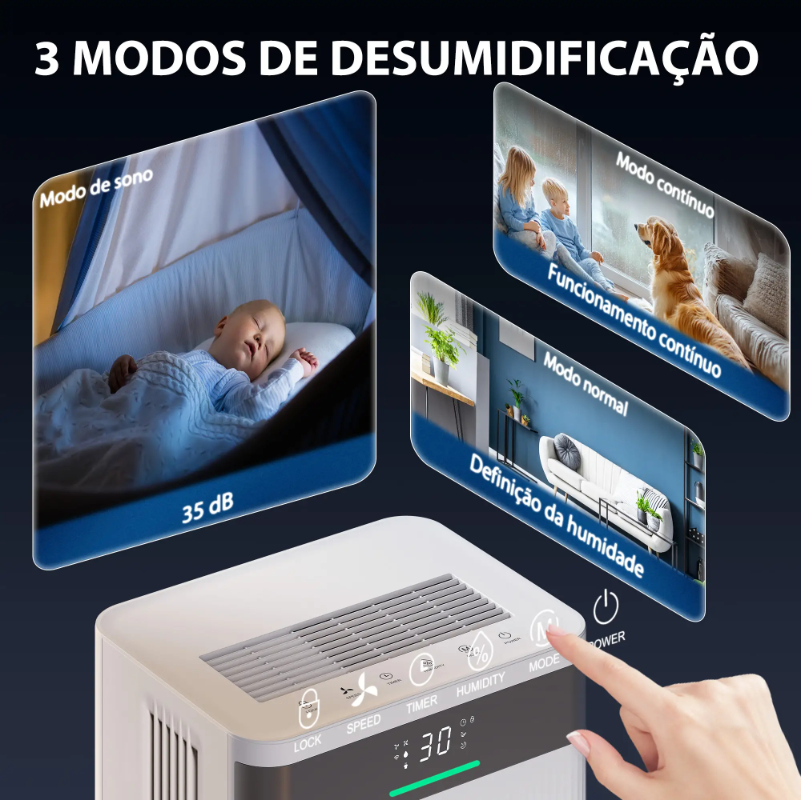 Con un funcionamiento ultrasilencioso, control inteligente de la humedad y opción de drenaje continuo, es perfecto para dormitorios, salas de estar, baños o lavaderos.