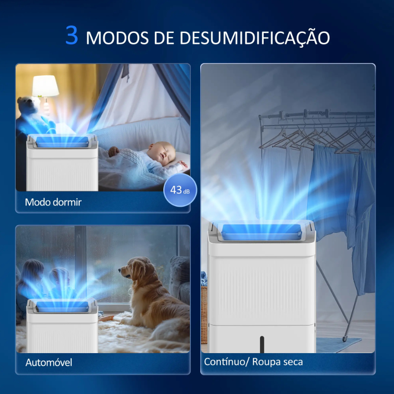Con una alta capacidad de extracción de humedad, es perfecto para salas de estar, sótanos, lavaderos, baños o dormitorios, ayudando a eliminar el exceso de humedad, el moho y los malos olores, y a secar la ropa más rápido sin necesidad de calor adicional.