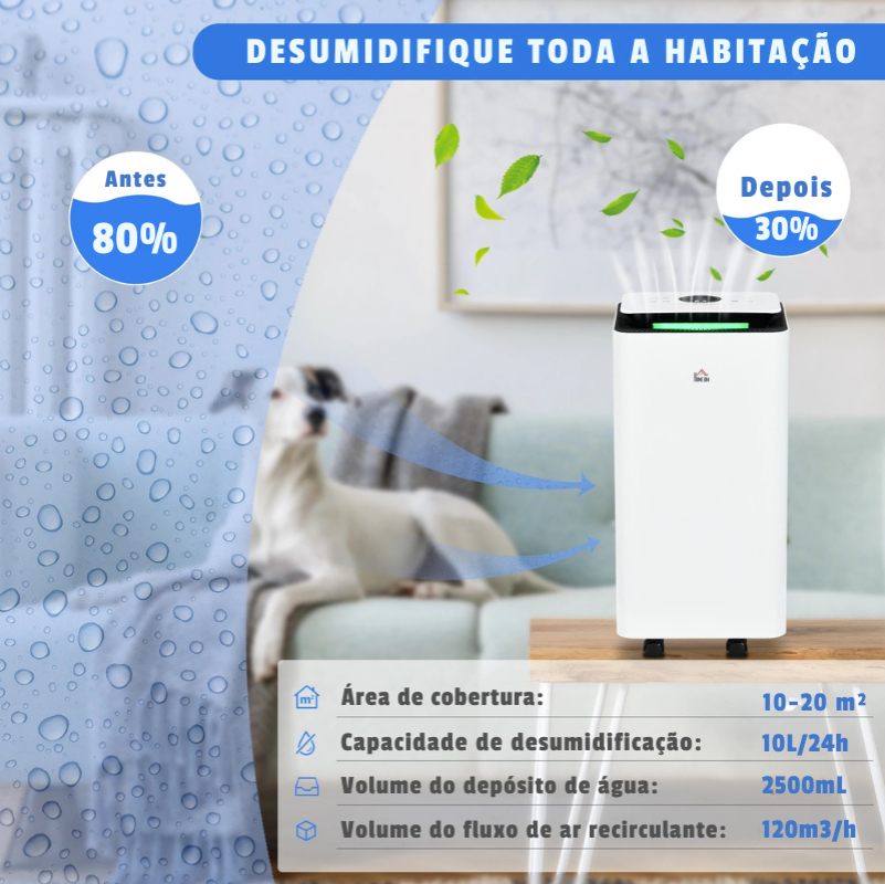 Este deshumidificador eléctrico HOMCOM está diseñado para mantener el aire de su hogar más seco, saludable y confortable.