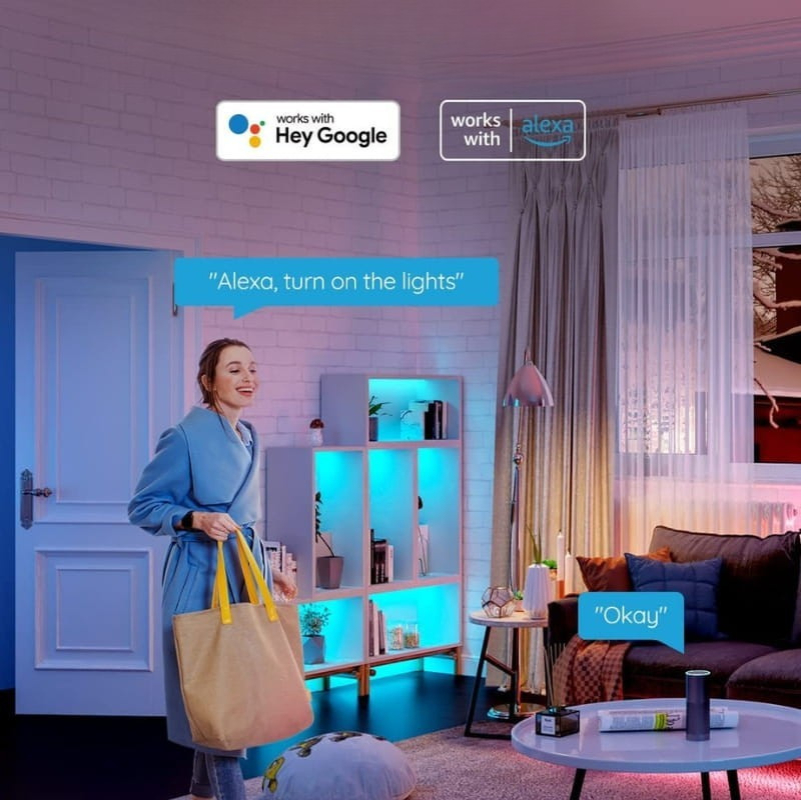 Ideal para dormitorios, salones o fiestas, combina control remoto mediante app, conectividad Wi-Fi y Bluetooth, y compatibilidad con Alexa y Google Home.