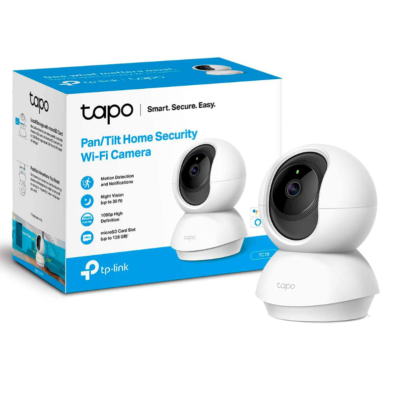 La cámara TP-Link Pan-Tilt Home es una cámara de seguridad IP para interiores con rotación horizontal de 360° e inclinación vertical, lo que permite una cobertura completa del espacio.