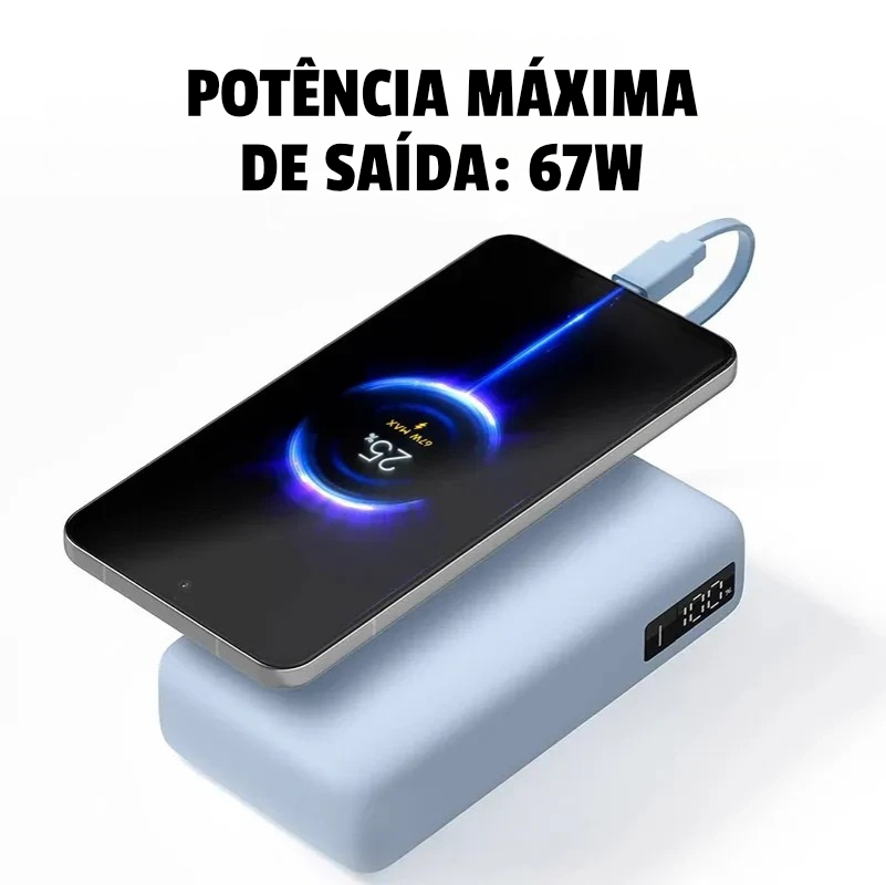 Equipada con hasta 67 W de potencia, esta batería externa garantiza una carga rápida, pudiendo cargar dispositivos compatibles en tan solo unos minutos.