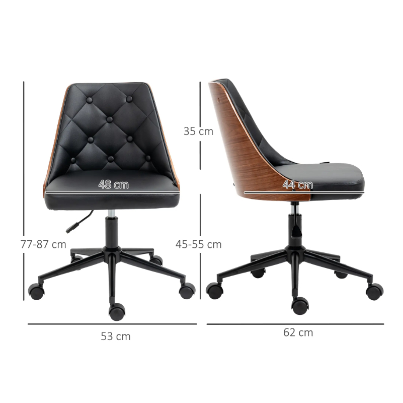 Tapizada en piel sintética de PU fácil de limpiar y con un asiento acolchado, proporciona comodidad incluso durante largos periodos de tiempo sentado.