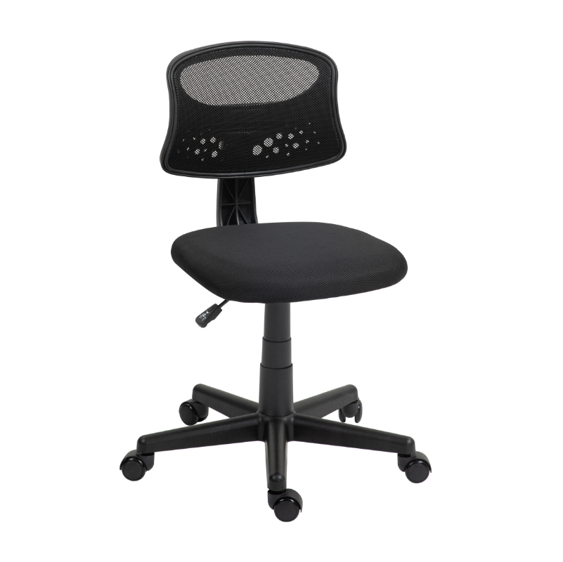 Su diseño sin brazos optimiza el espacio y ofrece mayor libertad de movimiento, adaptándose fácilmente a escritorios o mesas de escritura compactas.
