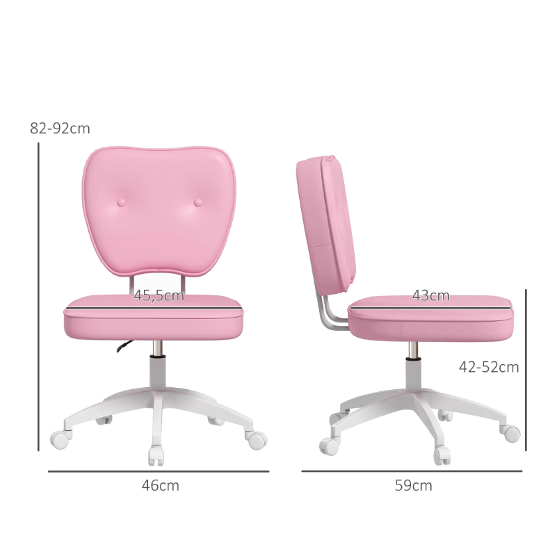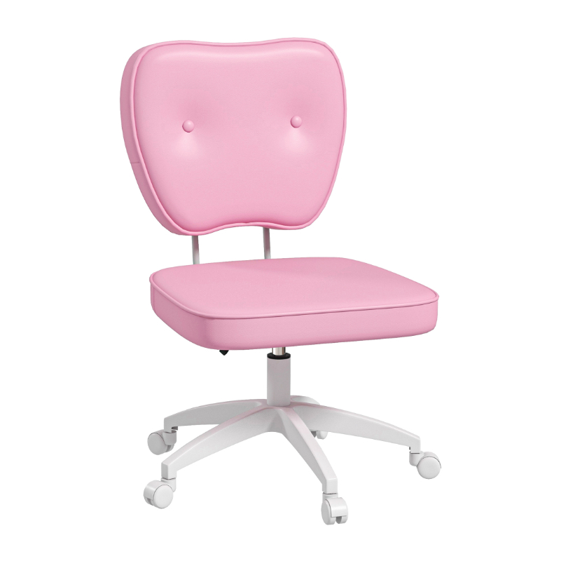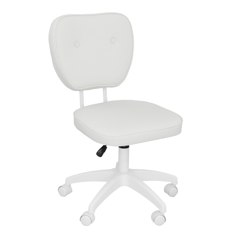 La base giratoria con ruedas garantiza una movilidad total, mientras que su diseño sin brazos ahorra espacio y proporciona una libertad de movimiento ideal para escritorios compactos.