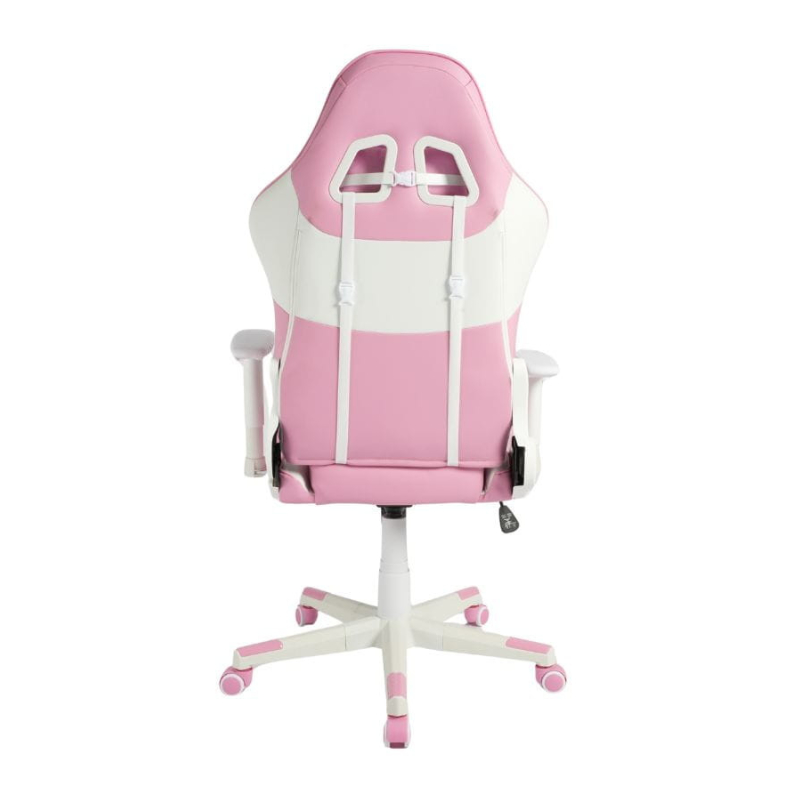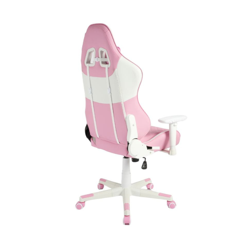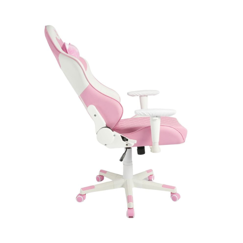 Las Cinco Ruedas De Pu De Competición Garantizan Un Movimiento Suave Y Silencioso, Mientras Que Las Líneas Angulares Y Las Costuras En Contraste Rosa Y Blanco Aportan Personalidad Al Conjunto Sin Necesidad De Iluminación Rgb, Ideal Para Un Entorno De Juego Elegante Y Moderno.