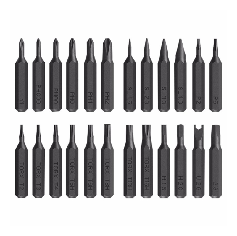 Incluye Un Destornillador De Aluminio Con Tratamiento Antioxidante Y 24 Puntas De Acero Tipo S2 Con Una Dureza De 60 Hrc, Lo Que Garantiza Resistencia Y Larga Duración.