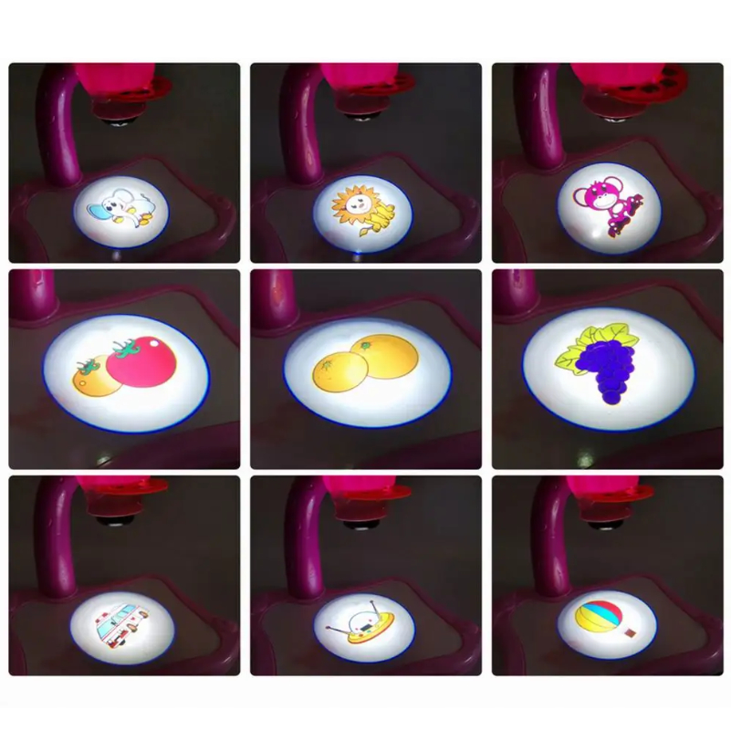 Los Niños Pueden Dibujar Y Pintar Basándose En Las Imágenes Proyectadas Sobre La Mesa O En El Cuaderno De Dibujo.