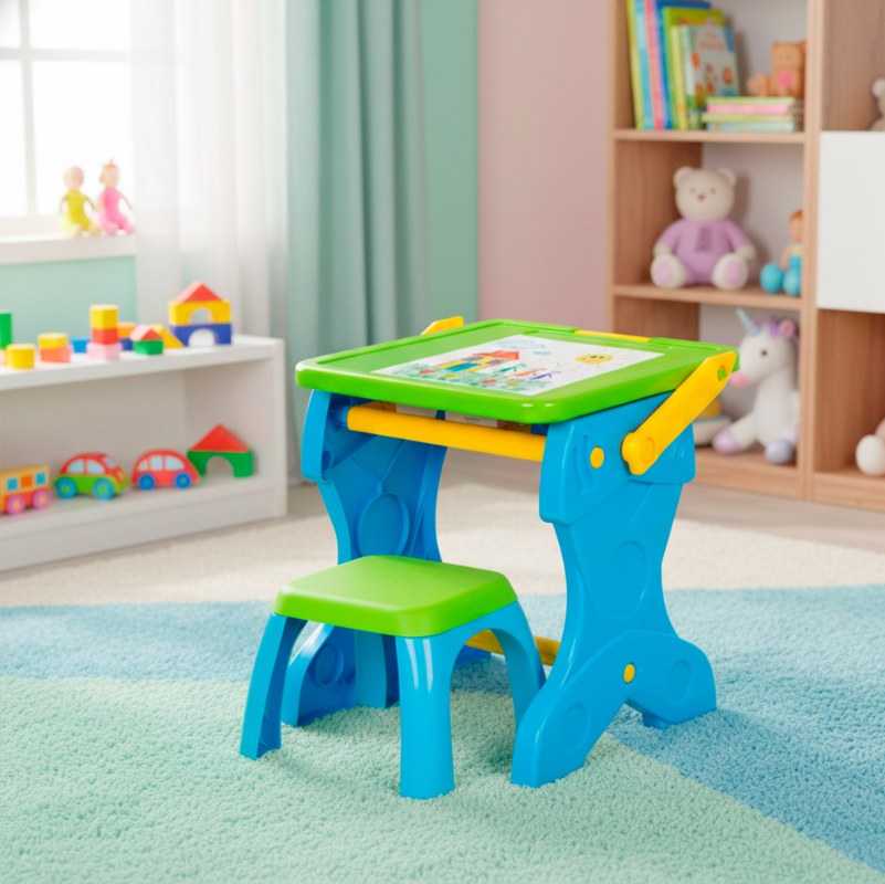 Con Un Diseño Práctico Y Funcional, El Niño Puede Alternar Fácilmente Entre Dibujar Sentado En La Mesa O En El Tablero, Estimulando La Creatividad, La Expresión Artística Y La Coordinación Motora.