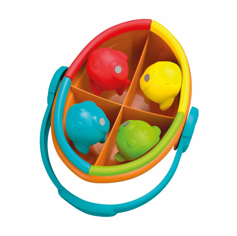 Los Niños Pueden Pescar Los 4 Simpáticos Pececitos Y Colocarlos En El Compartimento Del Barquito Correspondiente A Su Color: Un Reto Educativo Que Entrena La Coordinación Ojo-Mano, La Asociación De Colores Y El Razonamiento Lógico.