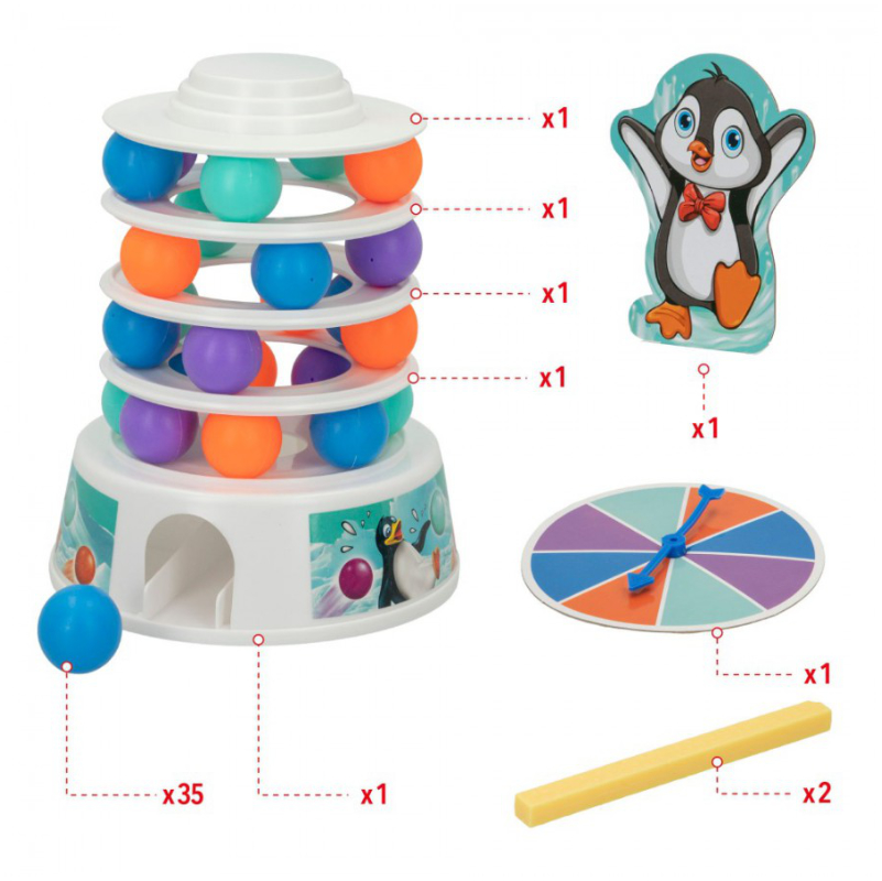 Los jugadores deben guiar a los pingüinos por la pista de hielo, intentando llegar a su destino sin caerse, desarrollando así la coordinación motora, la concentración y la estrategia.
