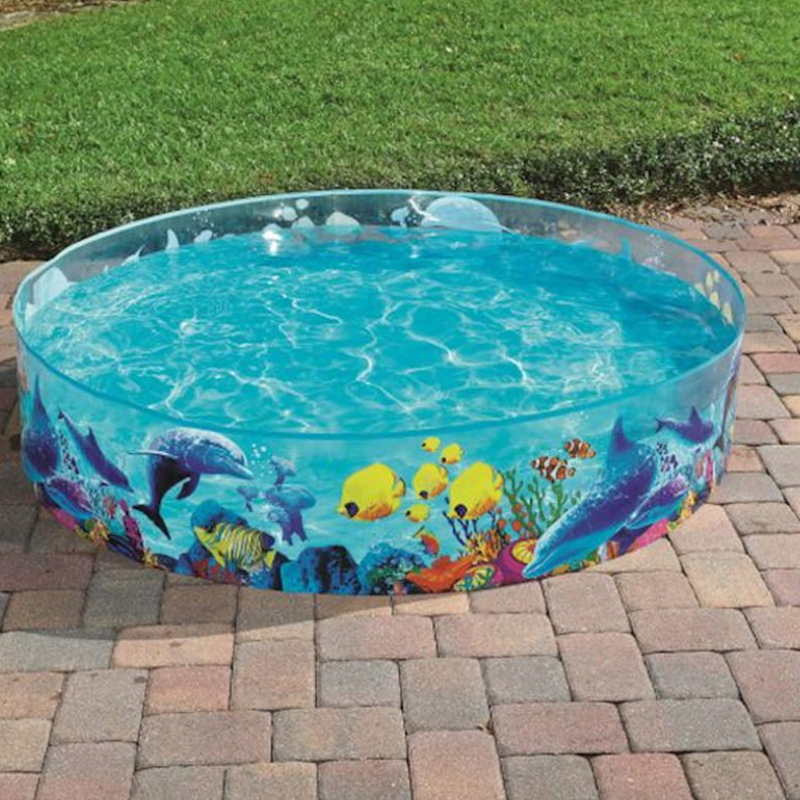 Con un diámetro de 183 cm y una altura de 38 cm, esta piscina es perfecta para espacios pequeños al aire libre. Fácil de llenar, vaciar y guardar cuando no se usa.