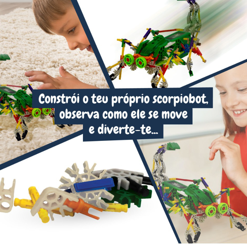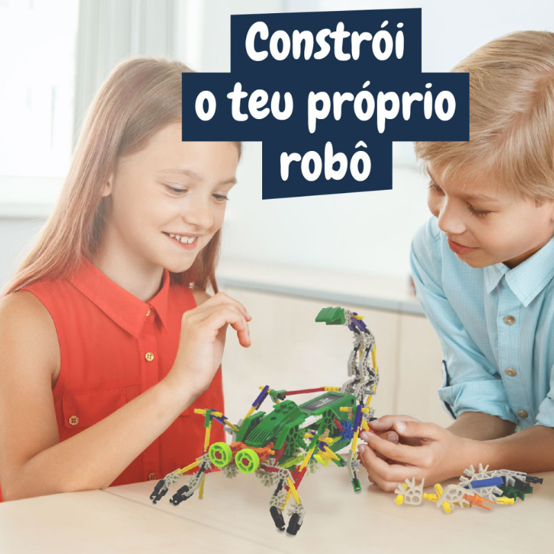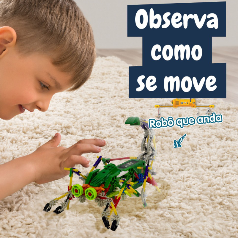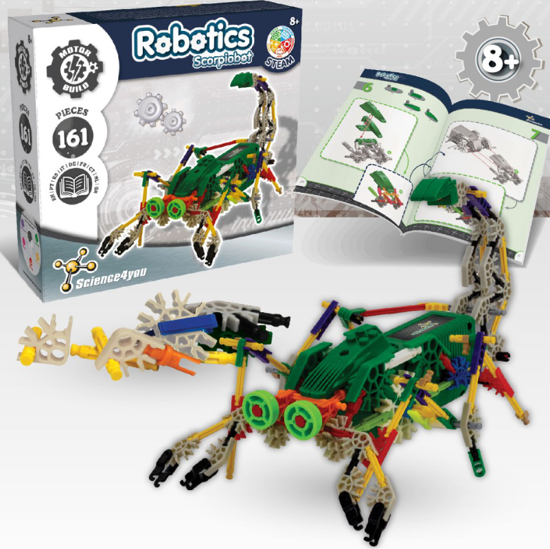 Con 161 piezas diferentes, los niños pueden construir este complejo robot con forma de escorpión, desarrollando la destreza manual, la paciencia y el razonamiento lógico mientras exploran los principios básicos de la robótica.