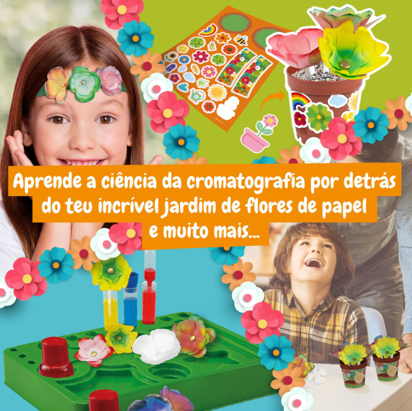 Mientras Se Divierten Armando Un Jardín Con Hasta 16 Flores De Papel, Los Pequeños Científicos También Aprenden La Ciencia De La Cromatografía, Descubriendo Cómo Se Separan Y Combinan Los Colores De Una Manera Divertida Y Educativa.