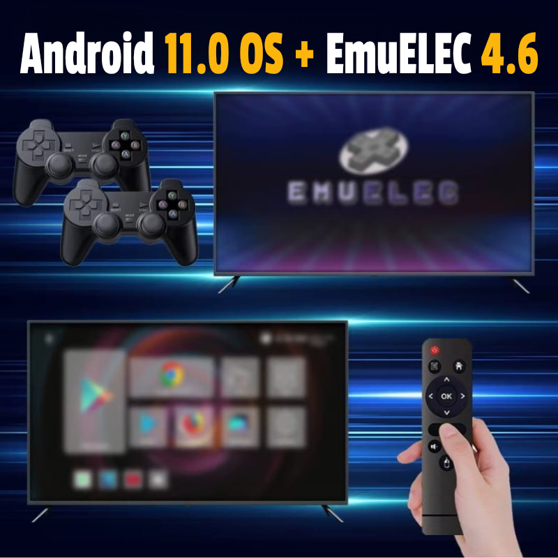 Con 4 GB de RAM y 32 GB de almacenamiento interno, ampliables con una tarjeta SD de 64 GB incluida, tienes espacio de sobra para miles de juegos y aplicaciones. El sistema operativo dual EmuELEC 4.6 + Android 11 te permite jugar clásicos de múltiples plataformas como PS1, MAME, PSP, 3DO, NES, N64, Dreamcast, Sega Saturn y más, además de admitir la descarga de aplicaciones a través de Play Store. La conectividad WiFi de doble banda (2,4 GHz y 5 GHz) garantiza un acceso a Internet rápido y estable, mientras que los diversos puertos disponibles (HDMI, USB, Ethernet, AV y SPDIF) facilitan la conexión a diversos dispositivos y accesorios.