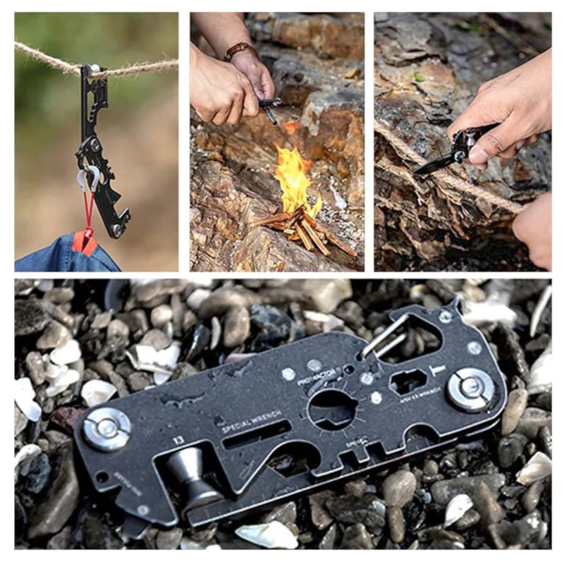 Ideal para aventuras al aire libre, ciclismo, reparaciones rápidas o uso diario, combina más de 10 herramientas esenciales en un único y resistente cuerpo de acero inoxidable.