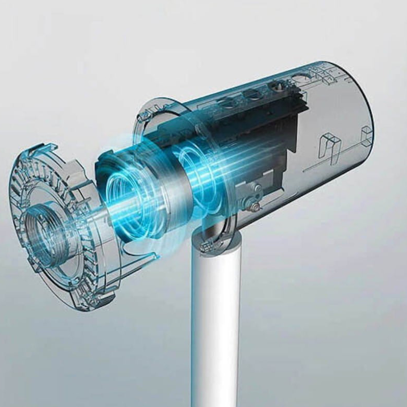 Cuenta con 7+5 aspas dobles que simulan el viento natural, un alcance de 140° y una batería de larga duración de hasta 18 horas.