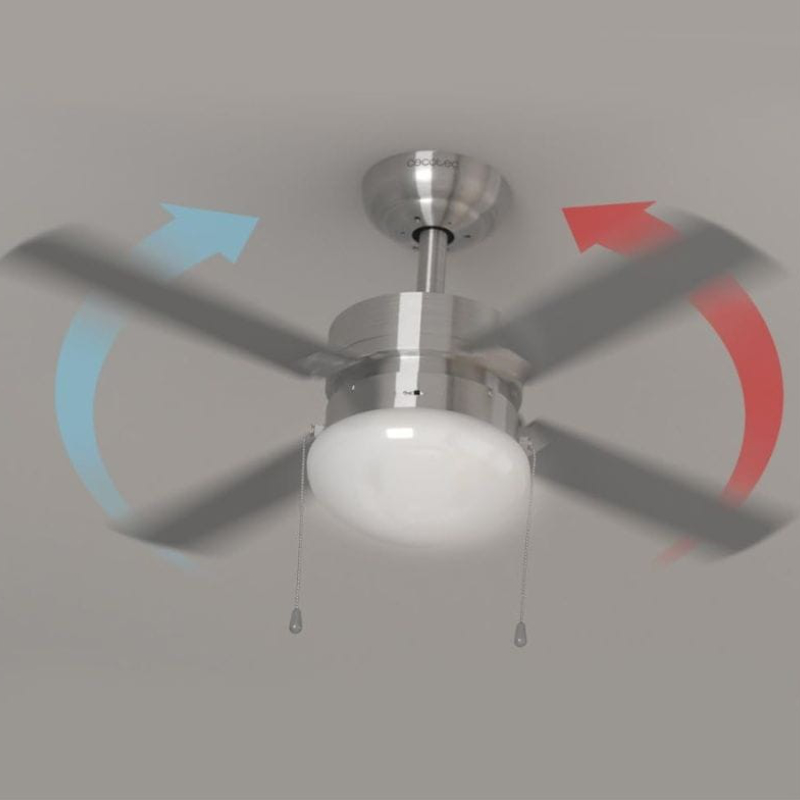 Cuenta con 4 aspas reversibles (AeroBlades) y función Frío y Calor, lo que permite usarlo en verano para refrescar o en invierno para redistribuir el aire caliente acumulado en el techo.