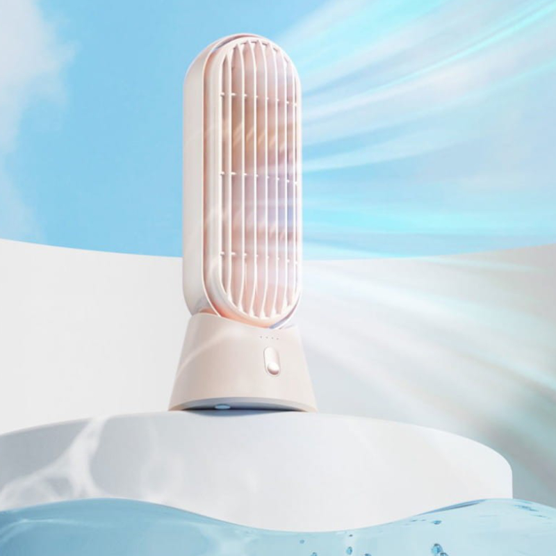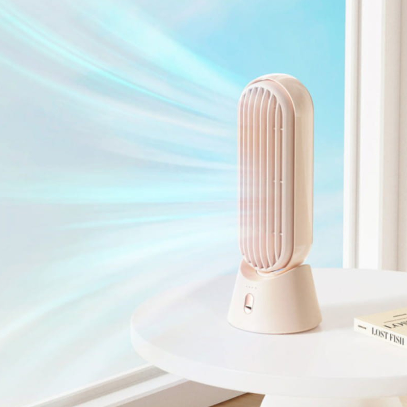 Compacto, elegante y versátil, este ventilador de escritorio ofrece hasta 12 horas de funcionamiento continuo gracias a su batería integrada de 4000 mAh.