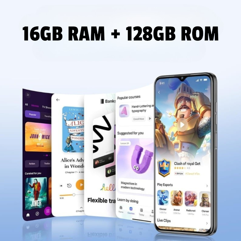 Gracias a la tecnología de RAM dinámica, el Oukitel C1 combina 4 GB de RAM física LPDDR4X con expansión virtual de hasta 16 GB, lo que garantiza fluidez y una respuesta rápida incluso con varias aplicaciones abiertas.