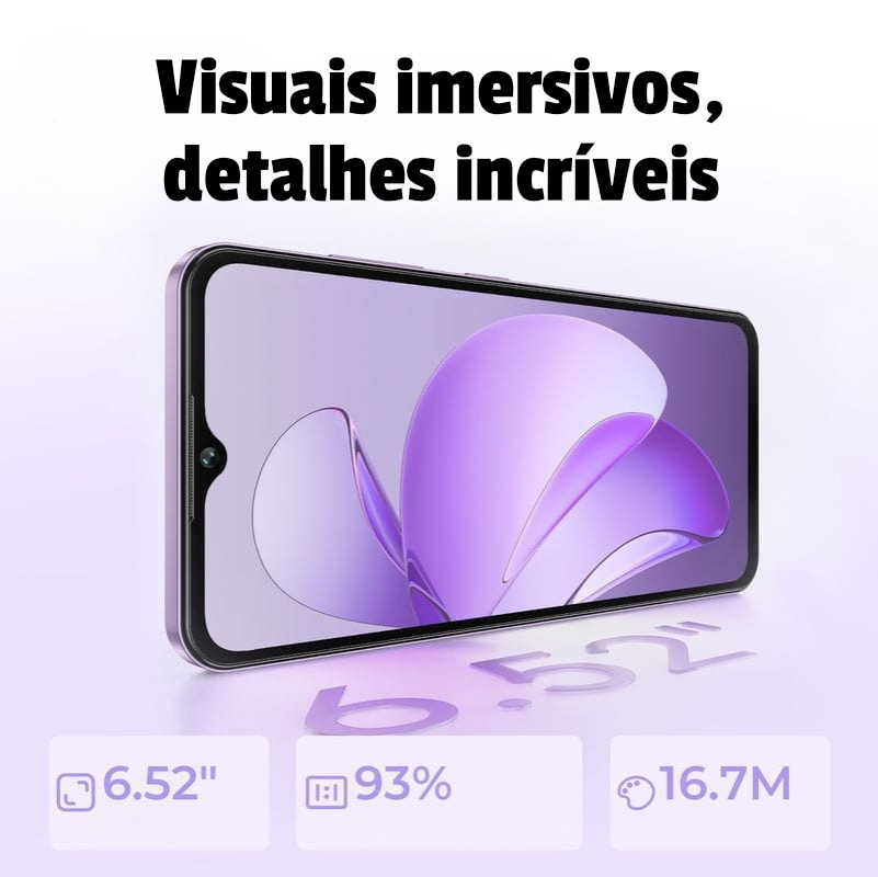 Con una pantalla IPS HD+ de 6,52”, una batería de 5000 mAh y el eficiente procesador Unisoc T310, ofrece una experiencia fluida para llamadas, mensajes, navegación, vídeo y aplicaciones esenciales.