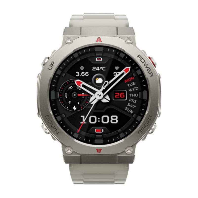 La pantalla AMOLED de 1.43″ ofrece una resolución de 466 x 466 px y una frecuencia de actualización de 60 Hz, con un brillo máximo de 1000 nits, lo que garantiza una excelente visibilidad incluso con luz solar intensa.